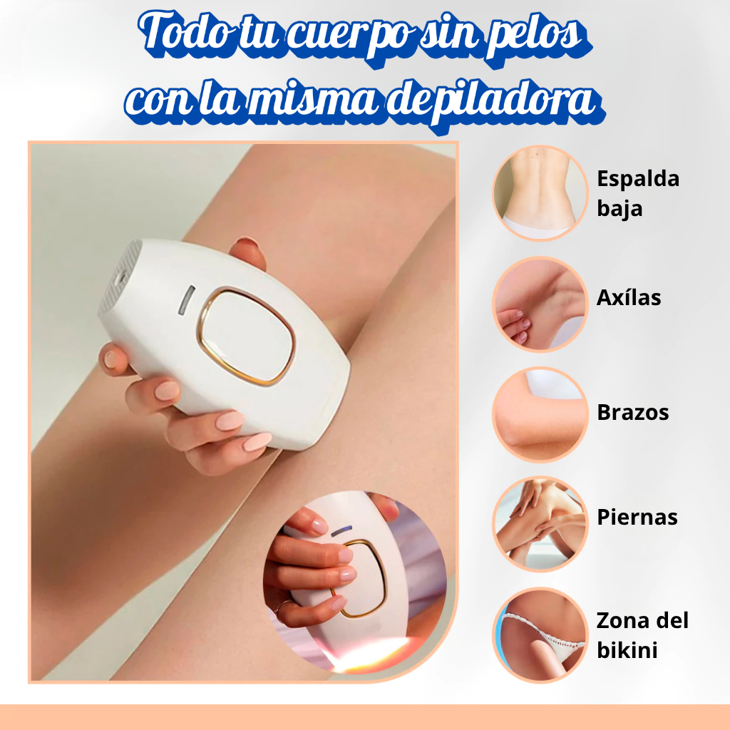 Decile adiós al vello corporal desde los primeros usos. La Depiladora Láser actúa directamente sobre el folículo, reduciendo el crecimiento del vello de forma visible y progresiva. Desde las primeras semanas vas a notar una piel más suave, limpia y sin irritaciones.